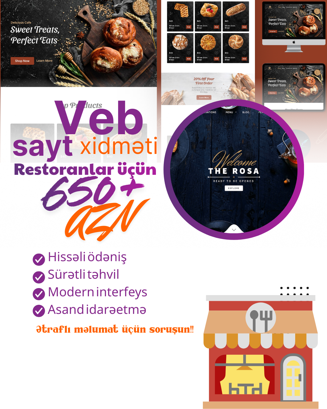 Biznesinizi qlobal dünyaya açmaq və müştəri bazanızı genişləndirmək istəyirsiniz? Biz sizə şablonlardan uzaq, tamamilə sizin istəklərinizə uyğun, unikal və yüksək texnologiyalı veb layihələrin hazırlanmasını təklif edirik.Həm kiçik bizneslər, həm də böyük şirkətlər üçün uyğun həllərimiz var.💻 Texniki imkanlarımız: Saytlar PHP (Laravel) üzərində qurulur. Bu nə deməkdir?Maksimum Sürət: Saytınız saniyələr içində açılır.Yüksək Təhlükəsizlik: Saytınızın "sındırılması" və ya virusa yoluxması riskini minimuma endiririk.Genişləndirmə İmkanı: Gələcəkdə sayta istənilən yeni funksiyanı əlavə edə bilərik.🌐 Hazırladığımız sayt növləri:Korporativ Saytlar: Şirkətlər üçün imic formalaşdıran rəsmi səhifələr.E-Ticarət (Online Satış): Məhsul kataloqu, səbət və onlayn ödəniş sistemi.Elan və Xidmət Saytları: Mürəkkəb axtarış sisteminə malik portallar.Fərdi Layihələr (Startaplar): Sizin ideyanıza uyğun xüsusi sistemlərin yazılması.🎁 Hədiyyə: Sayt sifarişi zamanı 1 illik texniki dəstək, domen/hostinq məsləhətləri və ilkin SEO (Google) optimallaşdırması təmin edilir.Gördüyümüz işə tam zəmanət veririk. Qiymət və detalları danışmaq üçün elandakı nömrəyə zəng edə və ya WhatsApp vasitəsilə yaza bilərsiniz.